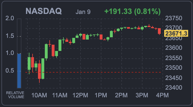 이날 뉴욕증시에서 대형주 벤치마크인 스탠더드앤드푸어스(S&P)500 지수는 전장 대비 0.13% 하락했다. 장중 한때 1.5%까지 밀렸던 지수는 경기 민감주 중심의 매수세 유입으로 낙폭을 줄였다. 기술주 비중이 큰 나스닥 지수는 0.72% 하락한 2만3685.12를 기록했으며, 블루칩을 모아놓은 다우존스30산업평균지수는 0.11% 오른 4만9071.56에서 거래를 마쳤다.