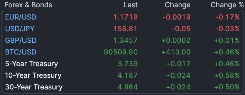 국채금리는 장기채를 중심으로 꼬리를 계속 들고 있다. 미 국채 10년물 금리는 전 거래일 대비 3.8bp(1bp=0.01%포인트) 오른 4.191%를 기록하며 지난해 9월 이후 최고 수준에 근접했다. 시장은 단기적으로는 금리 인하 가능성을 여전히 보지만, 중장기 인플레·재정 경로에 대한 경계심을 보이고 있다.