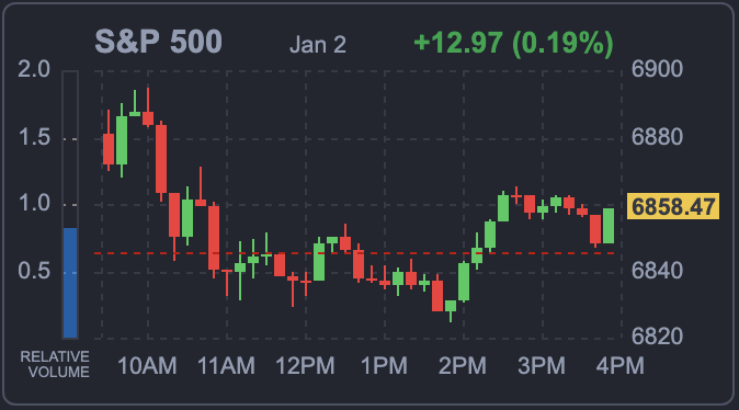 2026년 첫 거래일인 2일(현지시간) 뉴욕증시가 반도체주 강세에도 불구하고 기술주 전반의 약세가 겹치며 혼조세를 보였다. 지난해 기술주와 AI가 주도한 급등 이후 투자자들이 신중한 태도로 새해를 맞이하고 있다는 평가가 나온다. 연말·연초 증시 강세를 의미하는 이른바 ‘산타클로스 랠리’도 결국 나타나지 않았다.