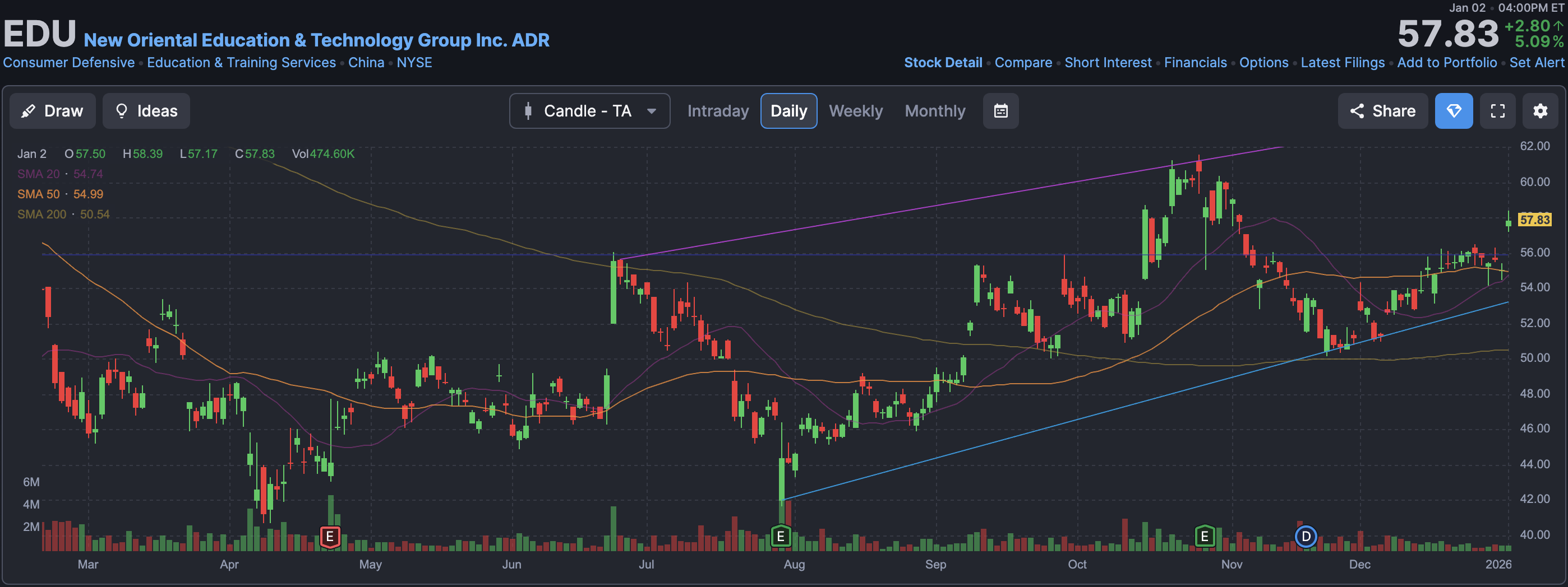 EDU 57.83(+5.09%)