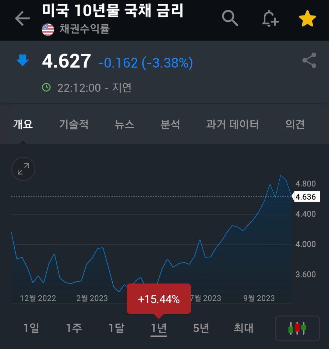 미국 10년물 국채금리도 주구장창 오르기만 하다가 4점대 후반부터 어제는 급락해서 4.5대로 내려오고.